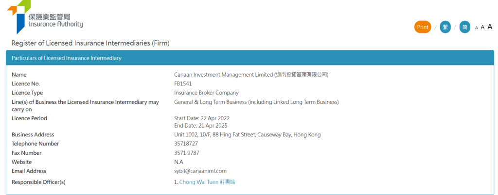 カナン・インベストメントは2006年に設立された香港のIFAで、香港保険当局であるIAのライセンスを得ています。